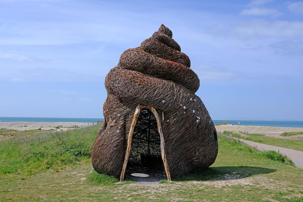 An unusual hide. Looks like a giant bird do-do to me. RSPB Nature Reserve, Pagham Harbour, West Sussex. The Solent Way. May 2025.