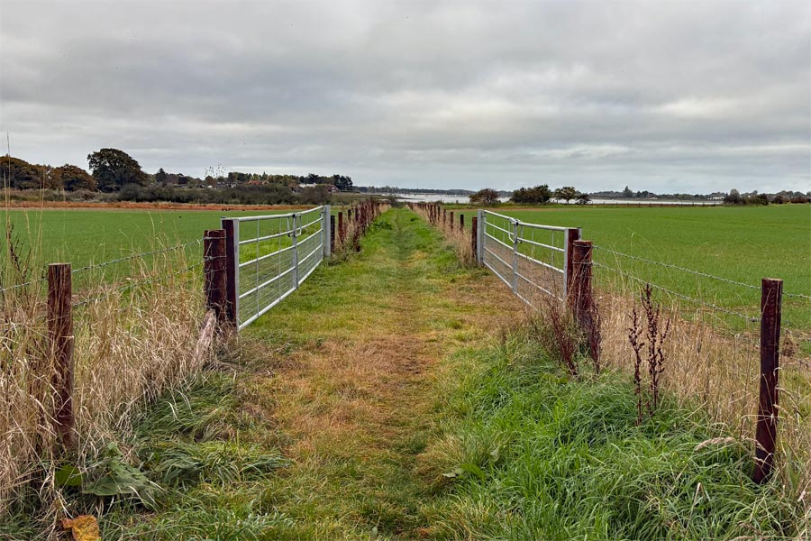 So I was not able to continue the walk to Ichenor. I had an alternative route although it was several miles longer and inland. For this I walked due east along public footpaths through farmland to the banks of the next channel, the Fishbourne channel where I then walked to its northern end to cross at the bridge there.