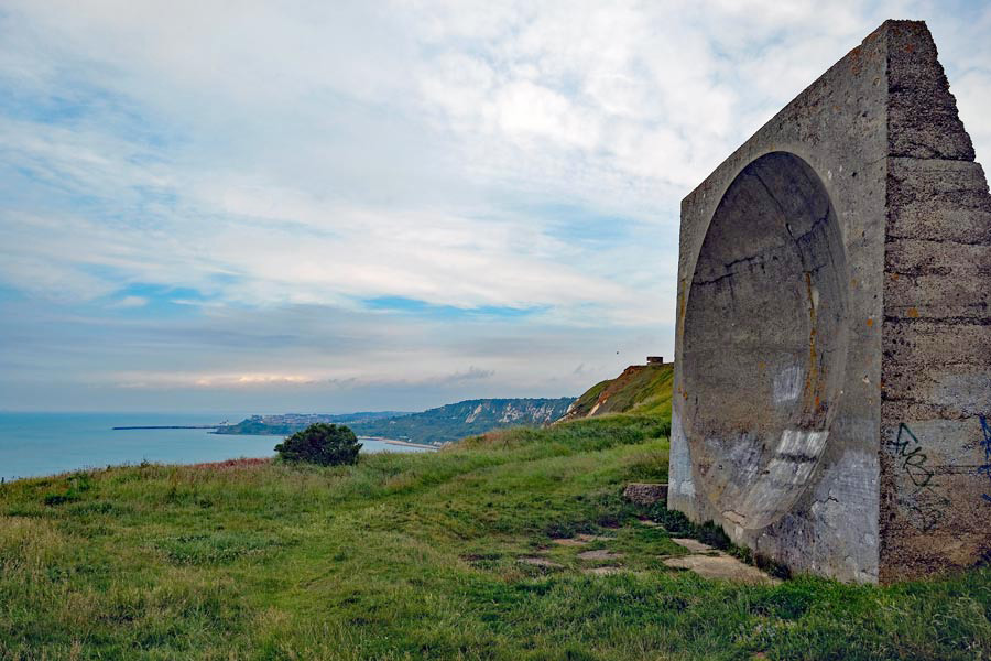 Folkestone to Dover on the North Downs Way. June 2019. War-time concrete 'listening ear'.