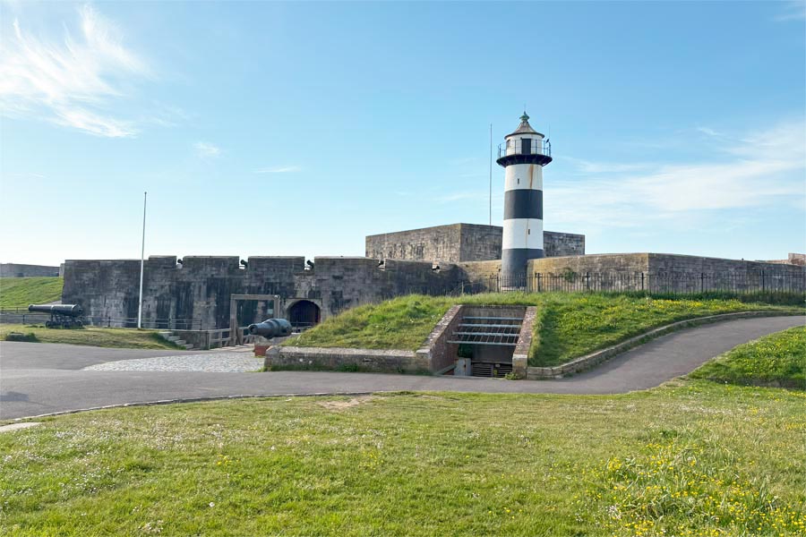 Another early start. Using the Apple Maps app I had chosen a quiet spot a short walk from the coast in Eastney, Portsmouth, to park for the day but from there I had several miles westwards to walk to where I had ended my walk the previous day which had been at the Spinaker Tower. There I turned back eastwards and walked along the promenade, passing Southsea Castle and the South Parade Pier. I stopped at a small kiosk on the promenade for a coffee and an omelette bap which I ate sat on a bench in the warm sun. Nothing else was open yet. Unlike the previous mornings it was already very warm.